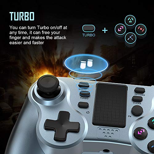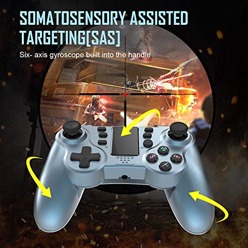 - 【Dual Vibration Feedback】PS-4 controladores con función de vibración dual y Sensor de seis ejes y joystick de alta precisión pueden comprobar sensiblemente la señal y generar diferentes intensidades y debilidades de efecto de vibración de acuerdo con la escena del juego para una experiencia de juego realista.