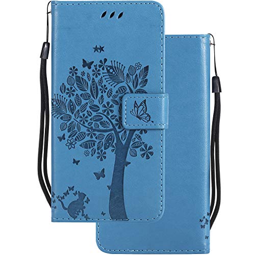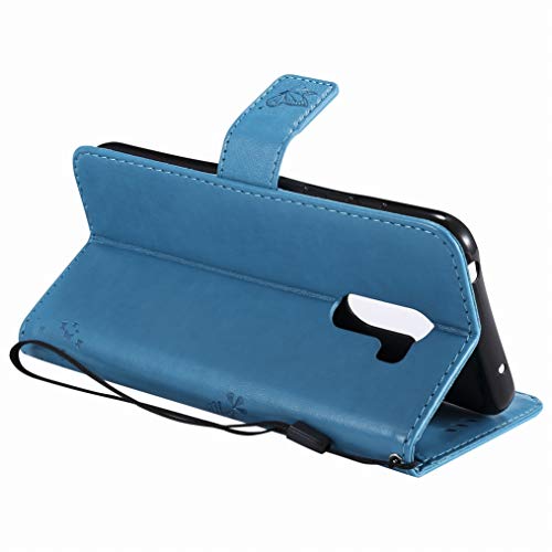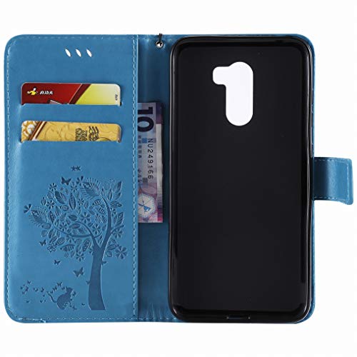 LEMORRY Carcasa para Xiaomi Pocophone F1 Funda Estuches Bolsa Piel Cuero Billetera Slim Cover Protector Magnética Suave TPU Silicona Tapa Funda para Xiaomi Pocophone F1, Árbol Suerte (Azul)