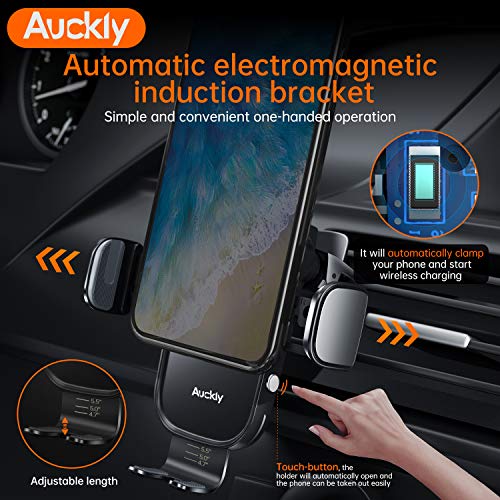 Auckly Qi 15W Cargador Inalámbrico Coche,Wireless Car Charger Soporte con Bloqueo Automático Rápida Salida de Aire para iPhone 12 Pro MAX Mini 11/XS MAX/XR/8/7,Galaxy S20/S10/P20 Note 9/S9 y Otros