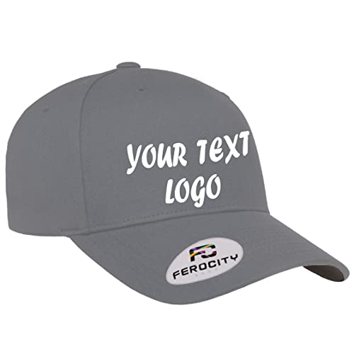 Ferocity, Gorra de béisbol personalizada con texto y gráficos personalizados, unisex, para adultos y niños, tamaño ajustable, 100% algodón, gris, Talla única