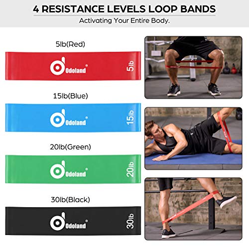 - 【SALUDABLE Y SEGURO】: Odoland bandas fitness hecho de látex 100% natural, el material natural puro se acerca a la piel. No hay olor a goma. Dispositivo de entrenamiento práctico, perfecto para viajar, en el gimnasio, en casa y al aire libre.
