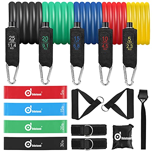 Odoland Juego de Bandas Elasticas de Fitness Incl. 5 x Bandas Elásticas de Resistencia,4 x Loop Band, 2 x Asas, 2 x Correas de Tobillo, 1 x Anclaje para Puerta y Libro Guía