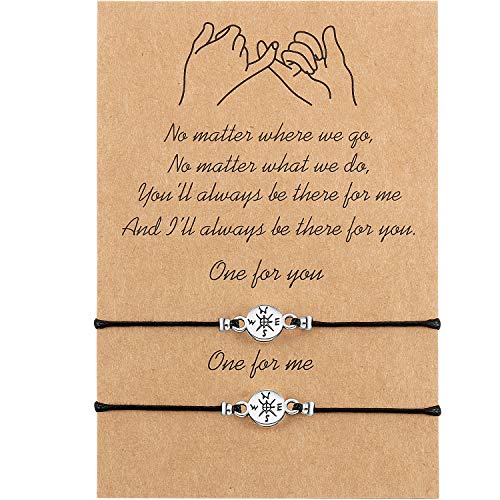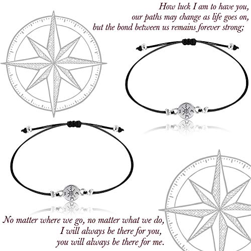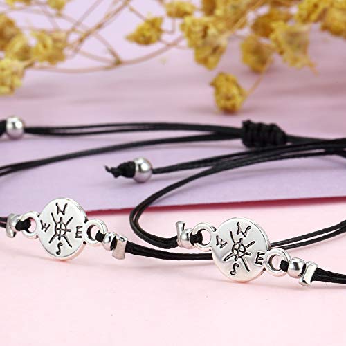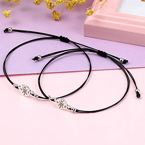 - Material: la pulsera hecha a mano está hecha de aleación de calidad y banda ajustable de tela negra con cuerda de cera, cómoda y duradera. El paquete incluye: 2 pulseras y 1 tarjeta de deseo