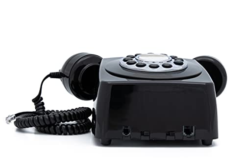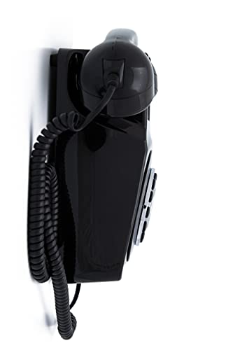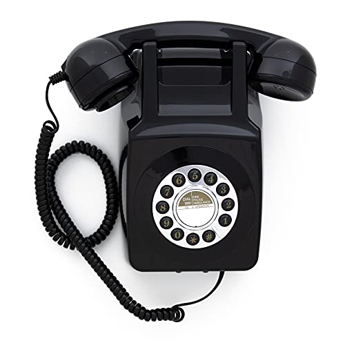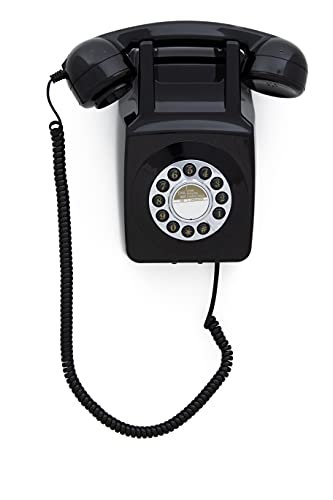 GPO 746 Teléfono fijo retro de pared con botones - Cable en espiral, timbre auténtico - Negro