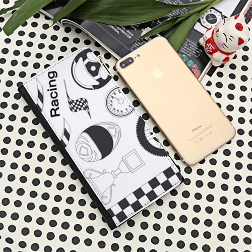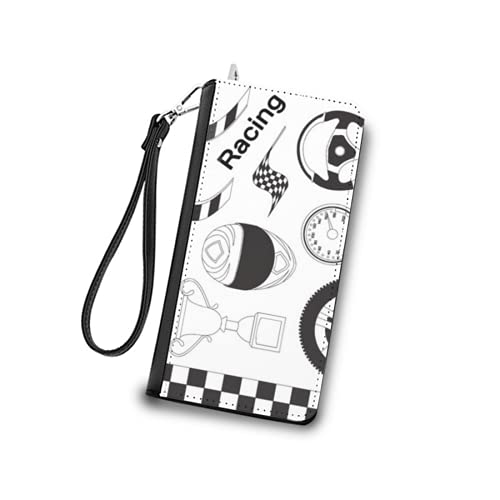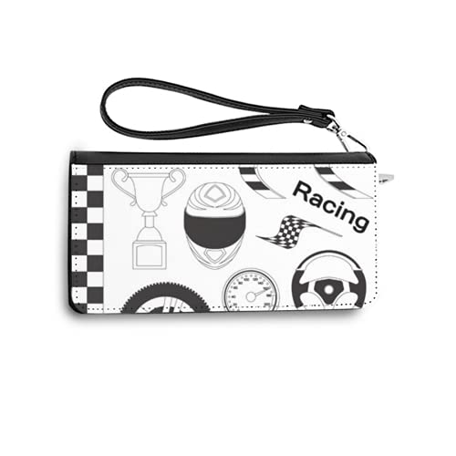 Carteras de Mujer Monedero Largo de Cuero Car Race Icons Set Stopwatch and Speedometer Tire and Pedestal Helmet and Cup Winning Finish Flag Anpu de Moda Cartera con Tarjetero para Mujer Organizar One