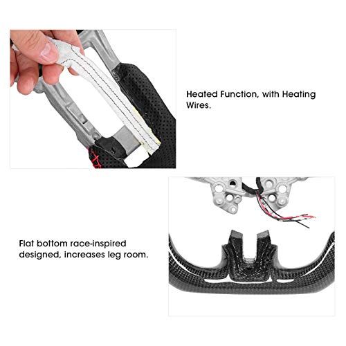 - 【Material】: Nuestro volante calefactado está cosido a mano. Utiliza un diseño de coche de carreras tipo D de fondo plano, con un anillo rojo a las 12 en punto, asa de cuero napa perforada, costuras rojas, bordes para los dedos y calentador. El volante utiliza un interior de cuero perforado de fibra de carbono/Napa para proporcionar un excelente agarre. A cualquier temperatura, incluso en situaciones de conducción extremas, puede disfrutar de la emoción de las carreras.