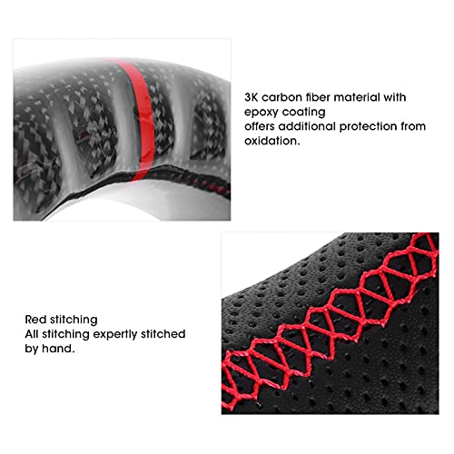 - 【Protección contra la oxidación】: Nuestro volante de alto rendimiento está hecho de material de fibra de carbono brillante 3K, recubierto con una capa de epoxi de 1 mm de espesor, por lo que brinda protección adicional contra la oxidación. Tiene un acabado superficial de alta calidad y alta resistencia al calor. La estructura de fibra de carbono es simétrica y uniforme, sin tejido retorcido.