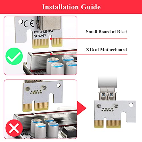 - 【PCI-E Riser】 Los kits de Riser de 6 pines de la versión 010-X son la mejor solución para configurar plataformas de minería Ethereum (o cualquier otra altcoin extraída de GPU), ya sean pequeñas plataformas al aire libre o grandes minerales basados en racks, y para asegurar tu inversión.