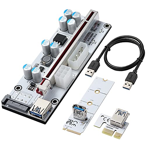 BEYIMEI PCIE Riser 1x a 16x Extensión Gráfica para Bitcoin Mining Powered Tarjeta de Adaptador de GPU Riser VER010-X + M.2 Riser a PCI-E + USB 3.0 Cable, 3 Opciones de Alimentación (6PIN/SATA/4Pin)