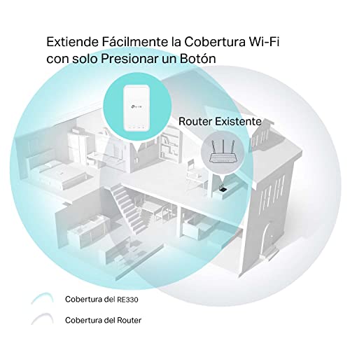 TP-Link RE330 - Repetidor WiFi, AC1200 mesh, Doble banda 5 GHz a 867 Mbps, 2.4 GHz a 300 Mbps, Puerto Ethernet, Soporta hasta 32 dispositivos