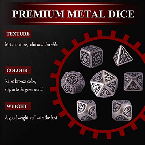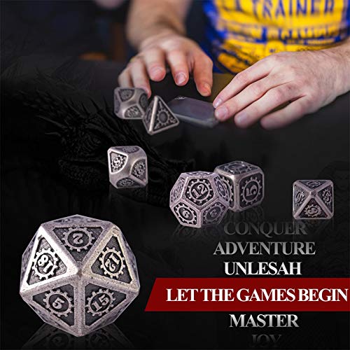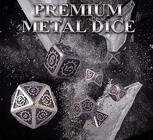 Metal Poliédricos Juego de Dados de rol, Dice Set Zinc Aleación Juegos de rol para Dragones y Mazmorras Juego de Mesa RPG DND Dice Gaming D&D (Barrel Nickel Plating)