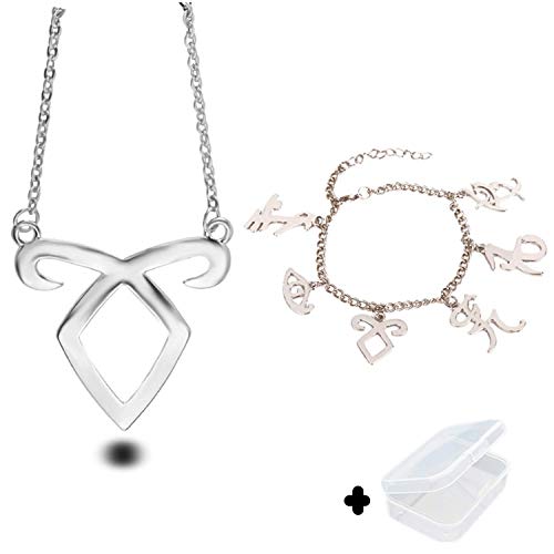 YouU 2 Piezas The Novel Classic Movie Bracelet Mix The Mortal Instruments Ciudad de Huesos Runes Charms Silver Filled Pulseras y Power Rune Necklace,con Caja