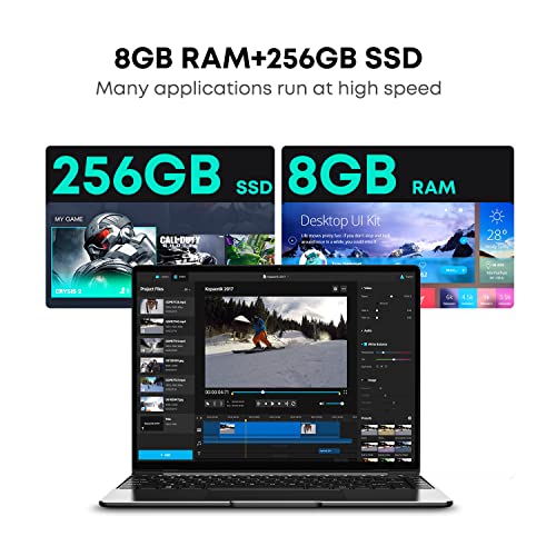 - CHUWI UltraBook equipado con RAM 8GB + 256GB SSD de alta velocidad manejan tareas diarias, e incluso abrir múltiples programas para trabajar o reproducir. soporta la extensión TF Card max hasta 128GB, SATA 2280 max hasta 1B para ampliar la memoria