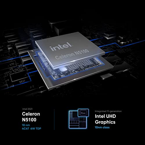 - Ordenador Portatil con Windows 10 Home OS preinstalado, la nueva generación de CPU Intel Celeron N5100, 4 núcleos y 4 hilos, 64bits. soporta las velocidades de frecuencia desde 1.1 Ghz max hasta 2.8 GHz,GPU Intel UHD Graphics , 350MHz-800MHz