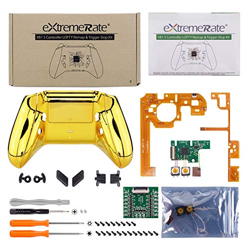 eXtremeRate Lofty Programable Remap&Gatillo de Parada Kit para Xbox (Actualización Board,Carcasa Trasera,Agarre,Botones Posterior,Trigger Lock para Mando de Xbox One S X-Modelo 1708)-Dorado Cromo