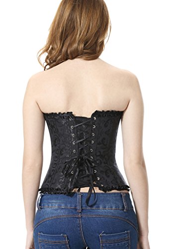 everbellus corsé sobre pecho de encaje satinado, escote corazón negro negro XXX-Large