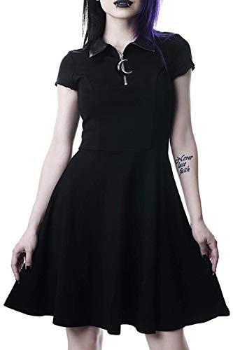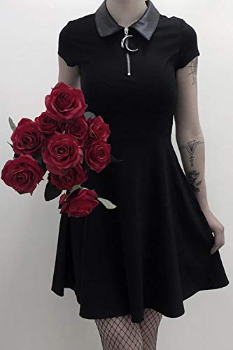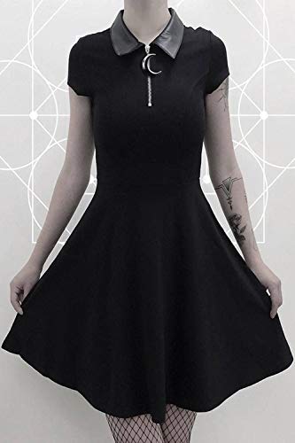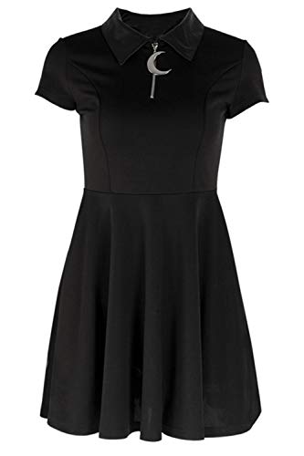 - Diseño: vestido gótico, falda acampanada, mangas cortas, solapas, cremallera en la parte delantera del pecho, cierre de cintura