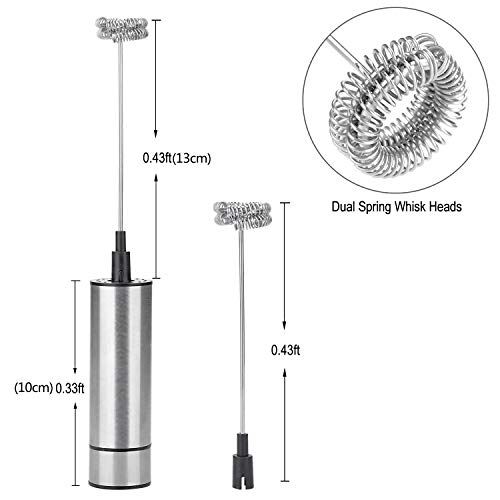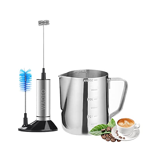 WADEO Espumador de Leche Eléctrico de Mano, set de Milk Frother Eléctrico de Acero Inoxidable/Batidor de leche, con cabezal batidor de doble primavera, taza de acero, Cepillo, soporte