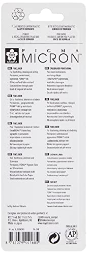 Sakura Pigma Micron - Rotuladores de punta fina de pigmento – 01/03/05/08/gráfico/pincel – cartera de 6 – tinta negra.