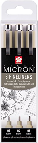 - La tinta Sakura Pigma está diseñada especialmente para no traspasar el papel y es resistente a la luz, lo que las hace perfectas para trabajos de arte dibujados a mano.
