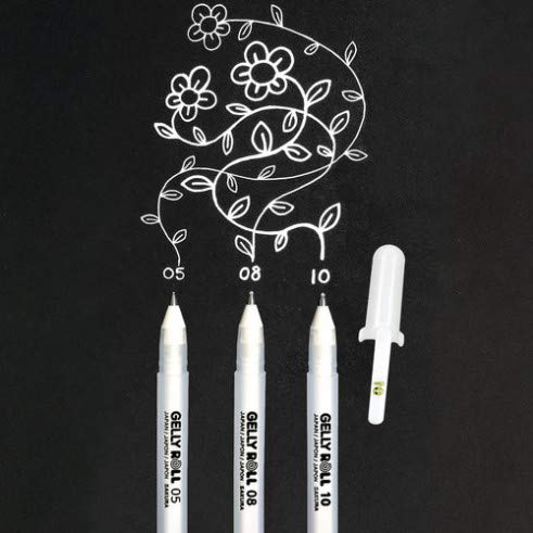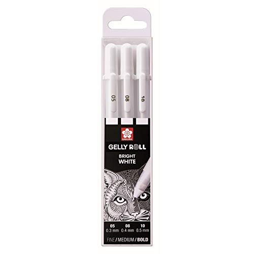 - Gelly roll fino, mediano y negrita no. 05, 08 y 10; juego de 3 unidades con tono blanco brillante