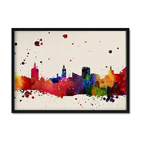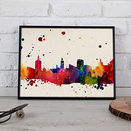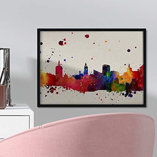 Nacnic Lámina Ciudad de Valencia. Skyline Estilo Acuarela y explosión de Color. Poster tamaño A3 Impreso en Papel 250 Gramos y tintas de Alta Calidad. Decoración del hogar. Diseño al Mejor Precio.