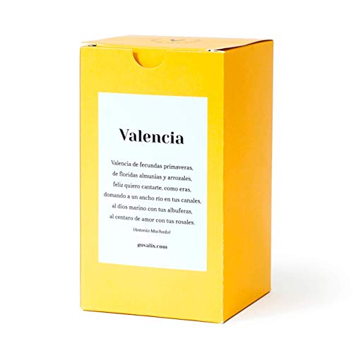 - El regalo perfecto para sorprender – Si tu amiga es una apasionada de Valencia o simplemente te gustaría tener un recuerdo de esta maravillosa provincia, la vela aromática Valencia de «GOVALIS» es tu producto. Su impresionante aroma cítrico y frutal a naranja y mandarina, así como su diseño lo convierten en un producto perfecto para regala a amigos, pareja, novio, novia, madres, padres y abuelos. Siente en tu hogar la esencia de Valencia para transportarte directamente a ella.