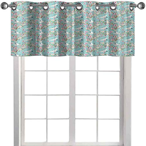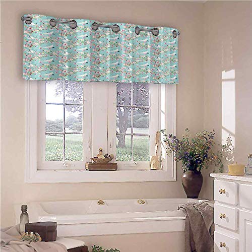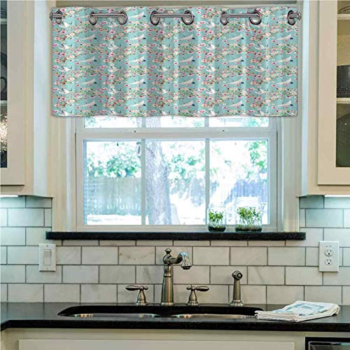 Cenefas de acuarela estilo artístico volador de pájaros con rosa Sakura flores de cerezo exóticas 50 pulgadas de ancho x 18 pulgadas de largo cortinas valencia para ventanas multicolor