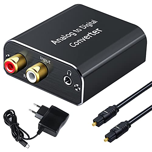 AMANKA Convertidor Analógico a Digital,Convertidor de Señal de Audio Análogo,Análogo Estéreo R/L RCA a Digital Óptico Coaxial Toslink SPDIF Audio Converter con Óptico Cable.