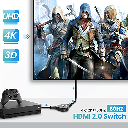 - ➤【Resolución Real 4K@60Hz】Este conmutador HDMI soporta 4K@60Hz,1080p@120Hz, 2160p, UHD, HDR, ofreciéndole una fiesta visual como la del cine. Sin pérdida de calidad de vídeo y audio. (Nota: 4K@60Hz requiere un cable de 2M).