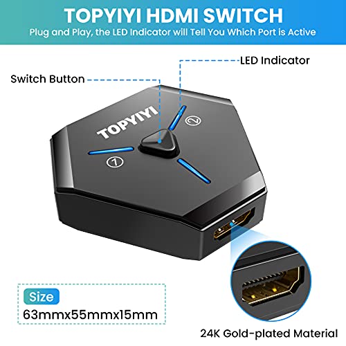 - Conmutador HDMI Modernizado: Construcción de aleación de aluminio, botón de selección manual con indicador LED, más duradero; Fácil de instalación y operación, compatible con HDMI conectar y reproducir. ?Cable HDMI no incluido.