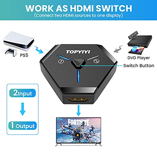 HDMI Switch, Conmutador HDMI Switcher Bidireccional Entrada 2 a 1 Salida o Switch 1 a 2 Salida, Soporta 4K, 3D y 1080P para HDTV, BLU-Ray Player, PS3, PS4, DVD, DVR, Xbox, etc (4K@30Hz)
