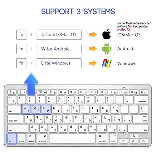 MEIXIANG Ultra Slim Hebrew Bluetooth Keyboard Israel Teclado Inalámbrico De Bajo Ruido Compatible para Tabletas US-Hebreo-Plata