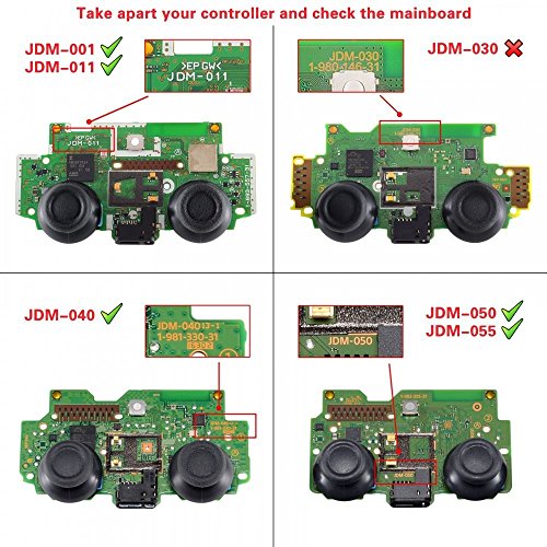 - Modelo compatible: Vea la segunda imagen de la lista antes de comprar. Verifique la placa base en el mando destornillándola para abrirla. Se ajusta a los mandos con JDM-001 / JDM-011 / JDM-040 / JDM-050 / JDM-055 impresos en la placa base del mando.