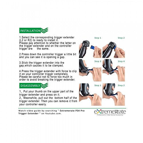 - Guía de instalación: Instálelo después de buscar un video guía de instalación en Youtube “Extremerate PS4 Pro Trigger Extender”. Nunca se caerá con tal que lo instale correctamente.
