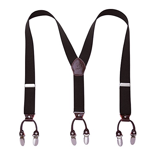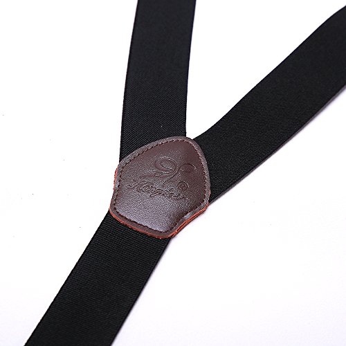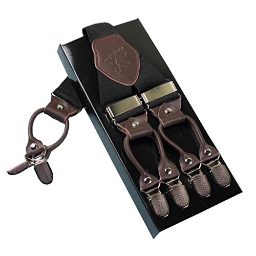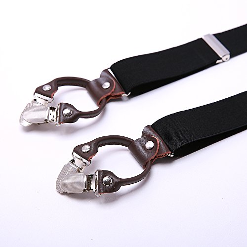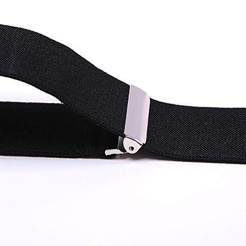 KANGDAI Tirantes Azules 6 hebillas Y Volver 10 colores duraderos elásticos Adjustable Suspenders Strong Metal Clips (Negro)