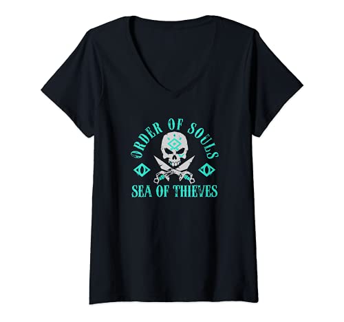 Mujer Sea of Thieves Order Of Souls Skull Crossed Swords Camiseta Cuello V