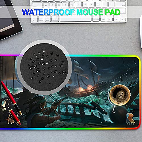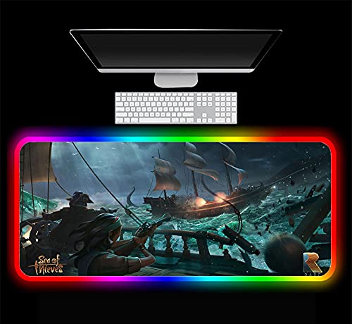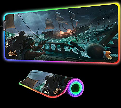 Sea of Thieves Game Alfombrilla de Ratón RGB Gamers Extend Game Desk Office Teclado de Juegos Profesional Pc Alfombrilla con Retroiluminación Led Regalo, 35.43 Pulgadas X15.74 Pulgadas