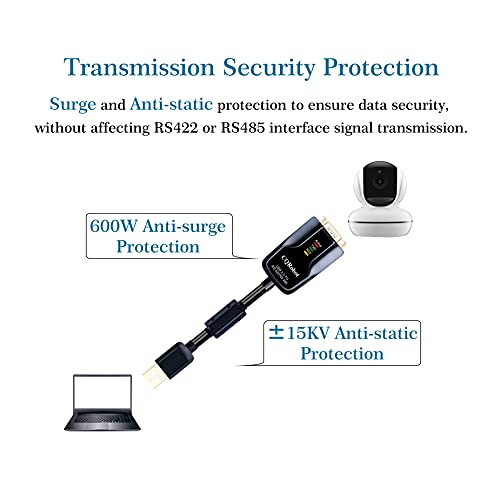 - El convertidor de puerto serie es muy adecuado para entornos industriales. Proporciona protección contra sobretensiones de 600 vatios y protección de aislamiento ESD de 15KV en todos los pines de señal para proteger equipos de control costosos y generalmente sensibles de daños eléctricos.