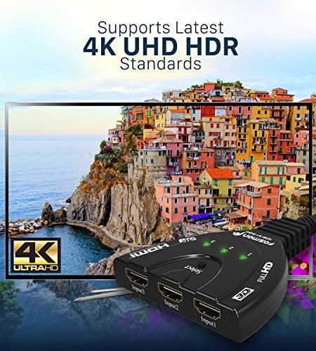 Fosmon 3-Puerto Conmutador HDMI 4K, 3x1 Switch, HDMI Automático, Selector Switcher UHD HDR 3D Full HD 1080p HDCP, 3 entradas, 1 Salida Divisor HDMI Splitter