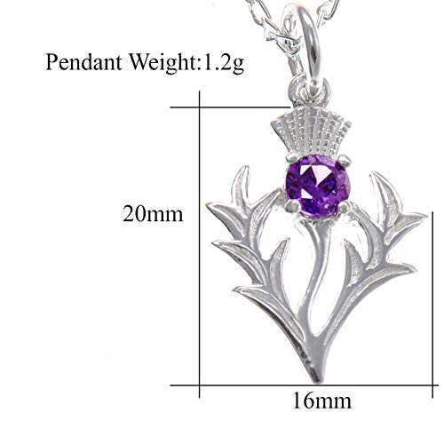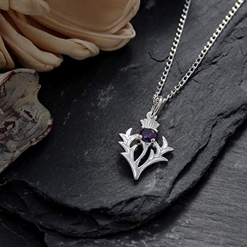 Colgante Cardo Escocés de Plata de Ley con Amatista - Collar Escocés con cadena 18 pulgadas