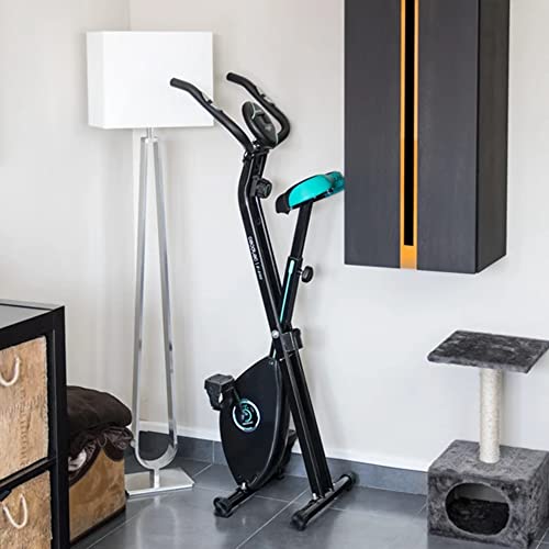 Cecotec Bicicleta Estática Plegable con Volante de Inercia de 2,5 Kg X-Bike. Sistema Silence Fit, Ergonómica, Manillar y Sillín Regulable, Pulsómetro, Pantalla LCD, Ruedas, Peso máximo 100 Kg