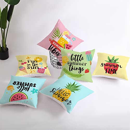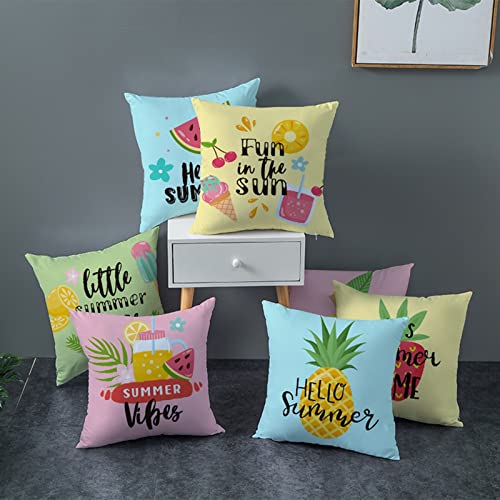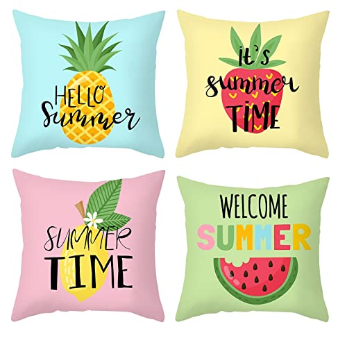 Daesar Funda 4 Cojines,Piña Fresa Sandía y Limón Funda Cojines 40x40 Baratos Azul Púrpura Verde Amarillo(Fundas Cojines Sin Relleno)