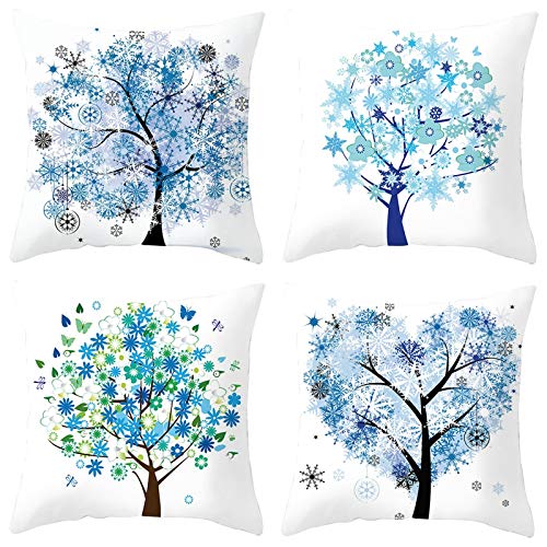 Homxi 4 Fundas Cojin Fundas Cojines 50x50 para Exterior,Funda de Cojín de Poliéster Patrón de Árboles (Gris Verde)