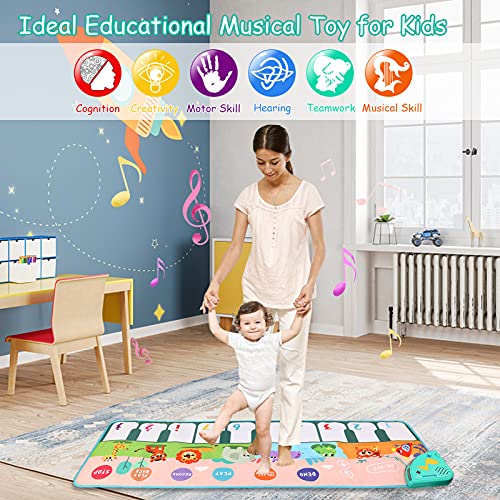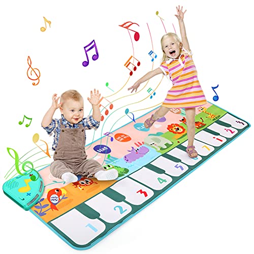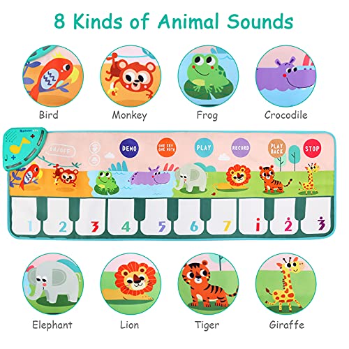 - ?? ?【Alfombrilla de piano para bebé con 8 voces de animales】 Esta esterilla de piano musical tiene 8 voces de animales, 6 modos de juego, 10 teclas musicales. Este divertido y atractivo tapete de juego les ayuda a adquirir los conocimientos básicos de música y fomenta su imaginación, el trabajo en equipo, el intercambio y las actividades físicas.