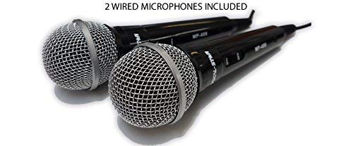- 2 Wired Microphones & Remote Control Included