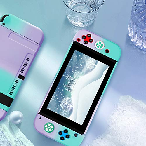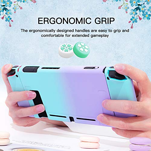 Haobuy Carcasa para Switch con 2 Tapas Sakura para Joystick, Dockable Funda para NS Switch Consola y Silicona Joy-con Cover, Duradera Carcasa Protectora Separable Estuche para Switch - Azul y Púrpura