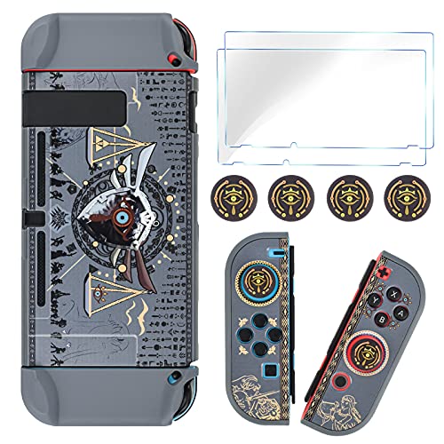 DLseego Zelda - Funda protectora acoplable compatible con Nintendo Switch, cubierta dura esmerilada con 2 protectores de pantalla de cristal y 4 tapas de agarre para el pulgar