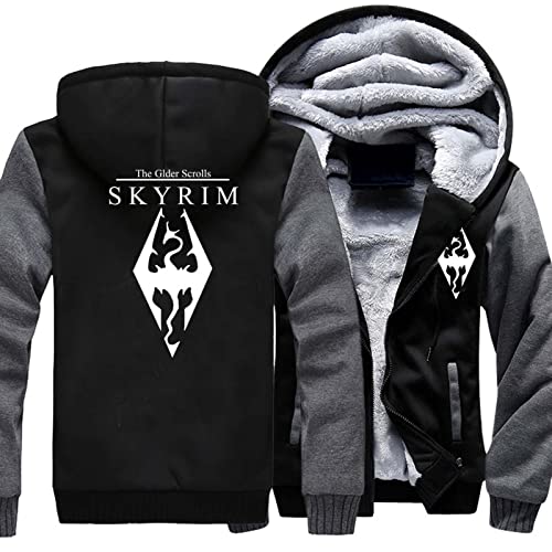COZY LS Sudaderas para Hombres con Capucha para Skyrim Impresión de la Chaqueta con Cremallera Pullover Fleece Coats Winter Warm Hooded Tops with Pockets-D||3XL