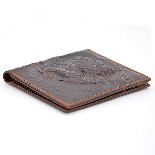 Billetera marrón para hombre con tarjetero con diseño de dragón vertical